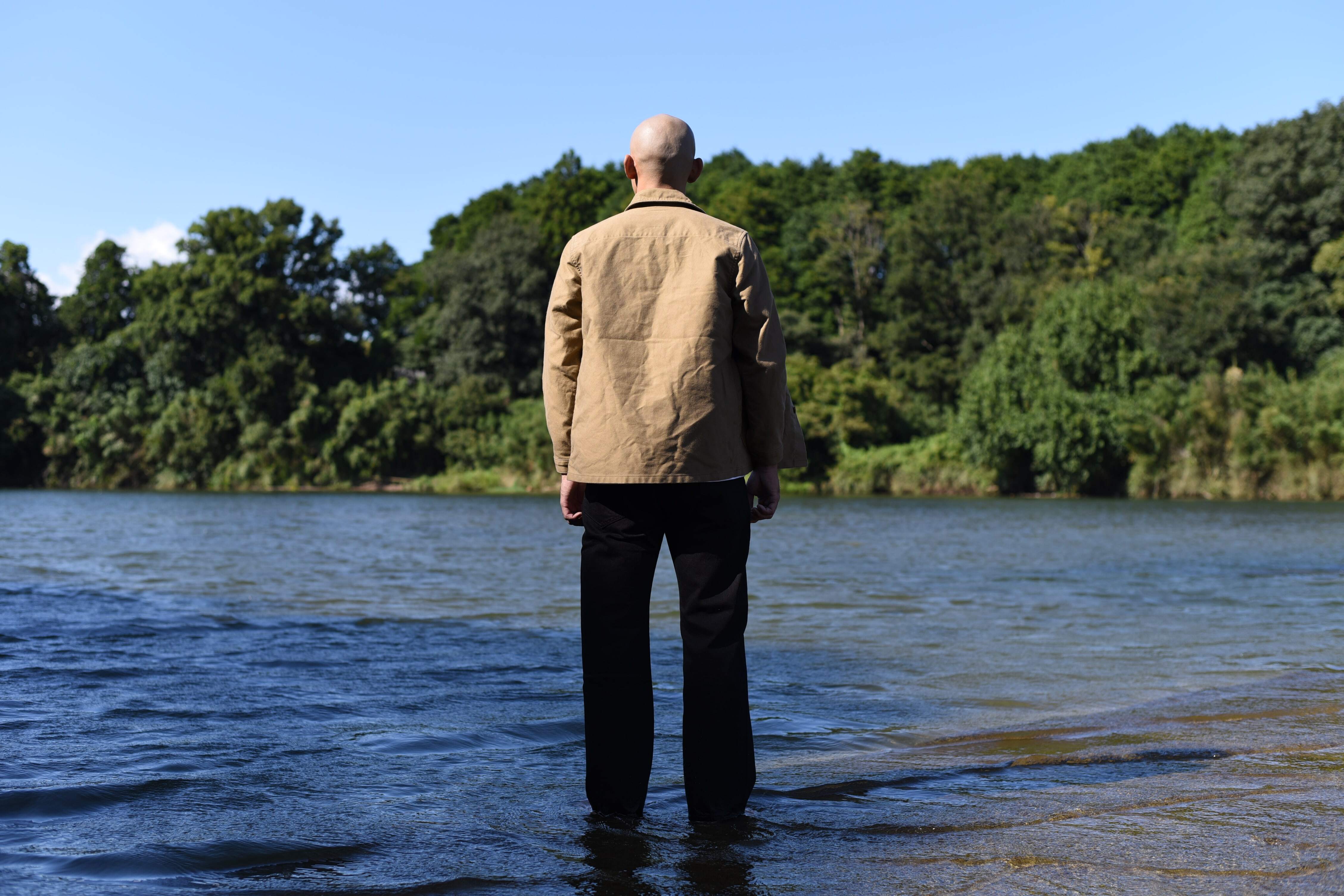 生地は地厚のある当時のカバーオールに似た質感のモールスキン生地で着初めの綺麗な面から着て洗っていく程に柔らかくその人に馴染んで行きます。モールスキン特有の生地の表情と奥行きが移り変わっていく様を楽しんで頂けます。