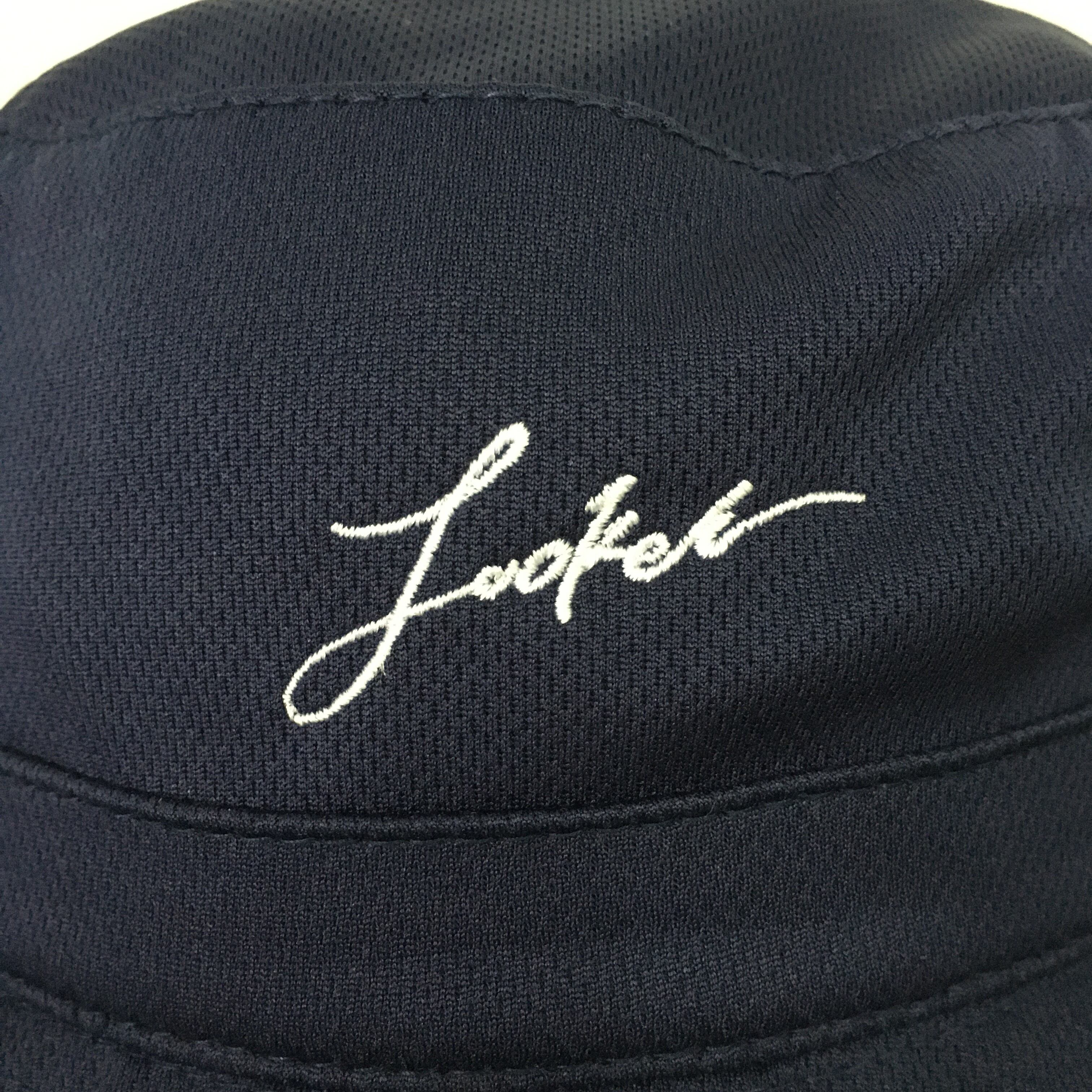 シンプルにする事で気負いなくより多く被って頂けるようにハットのFRONT部分にLOOKER SCRIPT LOGOを白糸で乗せました。